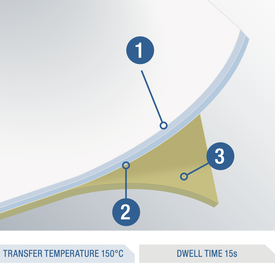 3 THE PROTECTION LINER is made of silicone paper that facilitates manipulation throughout the process and is removed after the transfer onto the textile.